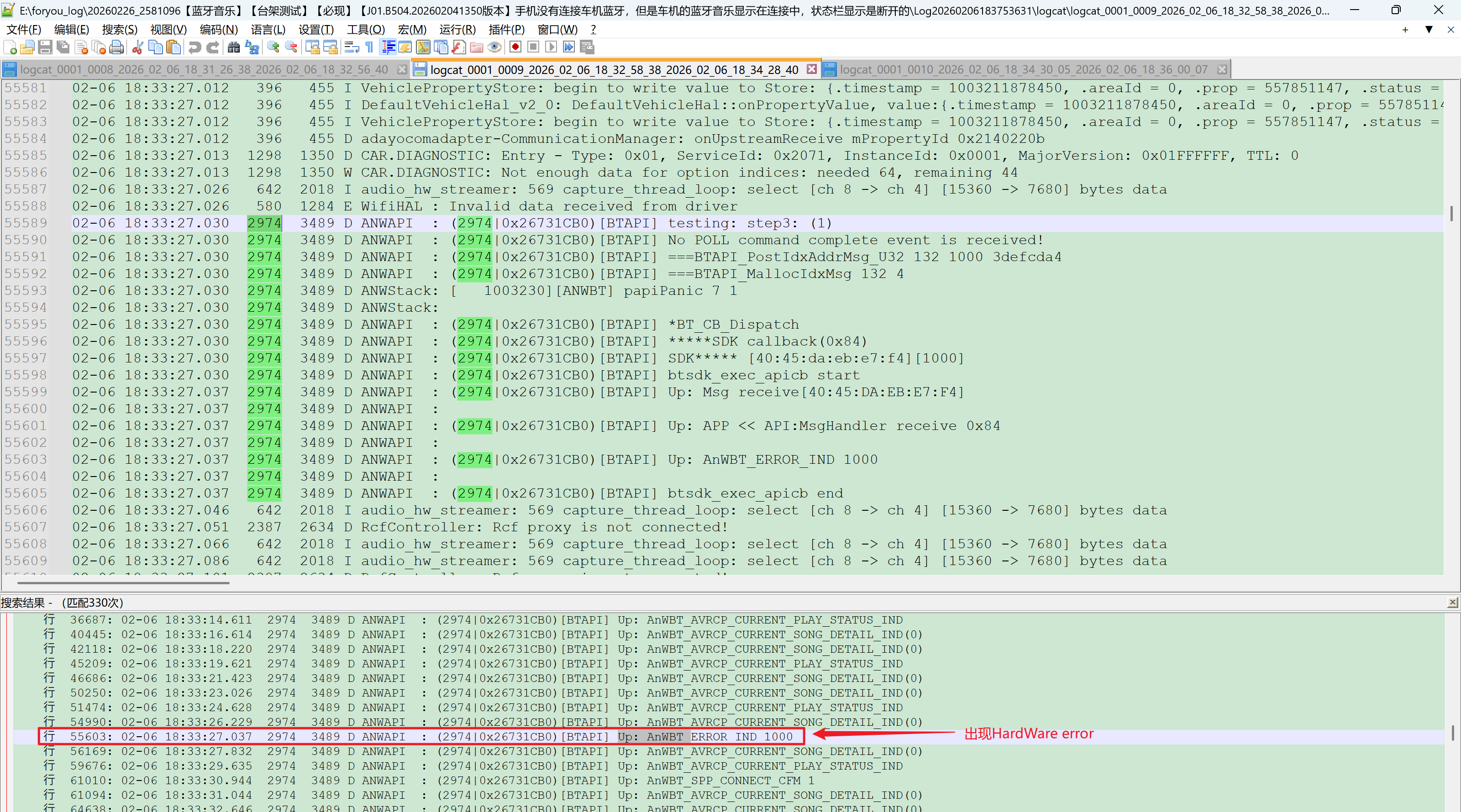 【实际结果】手机没有连接车机蓝牙,但是车机的蓝牙音乐显示在连接中,状态栏显示是断开的